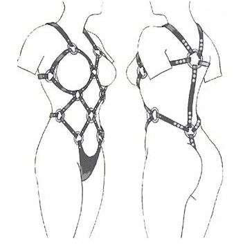 Imbracatura fantasia per il corpo in crosta di pelle da donna. Regolabile al 100% dalla taglia S alla XL.